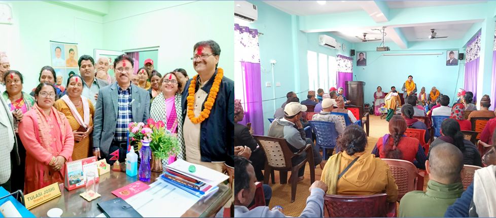 महेन्द्रनगर । वेदकोट नगरपालिकाले मंसिर ४ गते सम्पन्न भएको प्रदेश तथा प्रतिनिधी सभा सदस्यमा निर्वाचित भएका उम्मेदवारहरुलाई स्वागत तथा कार्यकालको सफलताको शुभकामना कार्यक्रमको आयोजना गरेको छ । निर्वाचन क्षेत्र नम्वर २ बाट निर्वाचित प्रतिनिधी सभा सदस्य तथा प्रदेश सभा सदस्यहरलाई नगरपालिकाको सभा हलमा स्वागत गरिएको हो ।