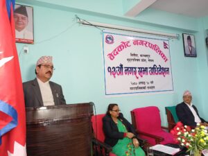 महेन्द्रनगर । समृद्ध वेदकोट नगरको आधार, कृषि उद्योग पर्यटन र पूर्वाधार“ भन्ने मूल नाराका साथ कञ्चनपुरको वेदकोट नगरपालिकाको तेर्हौ नगर सभा आईतवार सम्पन्न गरेको छ । वेदकोट नगरपालिकाले ९२ करोड २० लाख ५० हजार बजेट सार्वजनिक गरेको हो ।