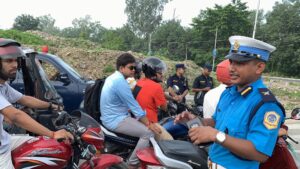 ट्राफिक प्रहरी कञ्चनपुरका प्रमुख विकको सक्रियता, दुर्घटनालाई कम गर्न सचेतना मुलक कार्यक्रम गर्दै