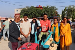 महेन्द्रनगर । कञ्चनपुरको कृष्णपुर नगरपालिकाले किसानहरुलाई ५० प्रतिशत अनुदानमा पावर टिलर र मिनी पावर टिलर वितरण गरेको छ । स्थानिय किसानहरुले उक्त मेसिन पाएपछि खुसी भएको र अब अँझ बढी उत्पादन गरी आम्दानी बढाउने बताएका छन् ।