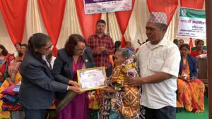 द्धन्द पिडित महिला, जेष्ठ नागरिक, समुदायमा विकासका लागी जग्गादान गर्ने महिला, महिला सहकारी संस्थाहरु लगायतलाई उहाँहरुको कार्यको उच्च सम्मान गर्दै र थप हौसला प्रदान गर्न र उहाँहरुलाई राज्य छ है सरकार छ है भनेर महसुस गराउनका लागी आजको कार्यक्रममा सम्मान गरिएको कार्यक्रमका प्रमुख अतिथी एवम वेदकोट नगरपालिकाका नगर प्रमुख भोजराज बोहराले बताउनु भयो ।