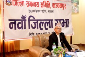 महेन्द्रनगर । जिल्ला समन्वय समिति (जिसस) कञ्चनपुरको नवौैं जिल्ला सभा बुधवार सम्पन्न भएको छ । जिल्ला समन्वय समितिका प्रमुख दुर्गादत्त बोहराको अध्यक्षतामा जिल्ला सभा सम्पन्न भएको हो । कार्यक्रममा कञ्चनपुर जिल्लामा रहेका नौ वटै स्थानिय तहका प्रमुख उप प्रमुख अध्यक्ष, उपाध्यक्ष सहितहरुको उपस्थिती रहेको थियो ।