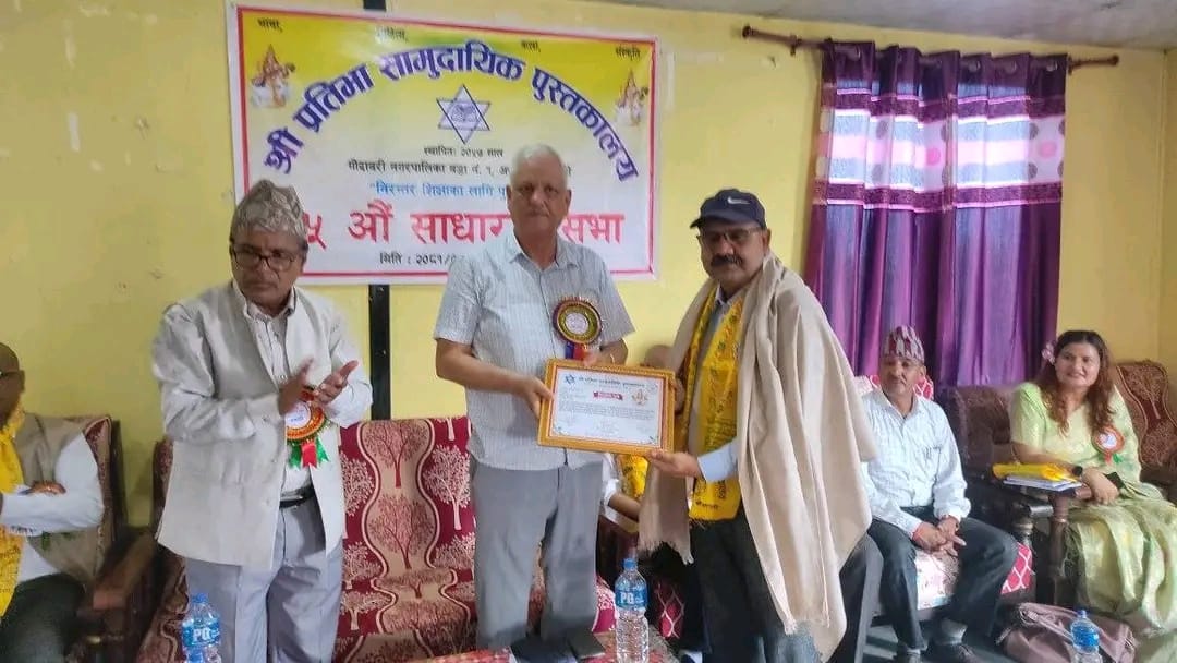 महेन्द्रनगर । सुदूरपश्चिमाञ्चल साहित्य समाजका महासचिव गणेश नेपाली सम्मानित हुनु भएको छ । श्री प्रतिभा पुस्तकालय अत्तरियाको साधारण सभाले मंगलवार महासचिव गणेश नेपालीलाई सम्मान गरेको हो ।