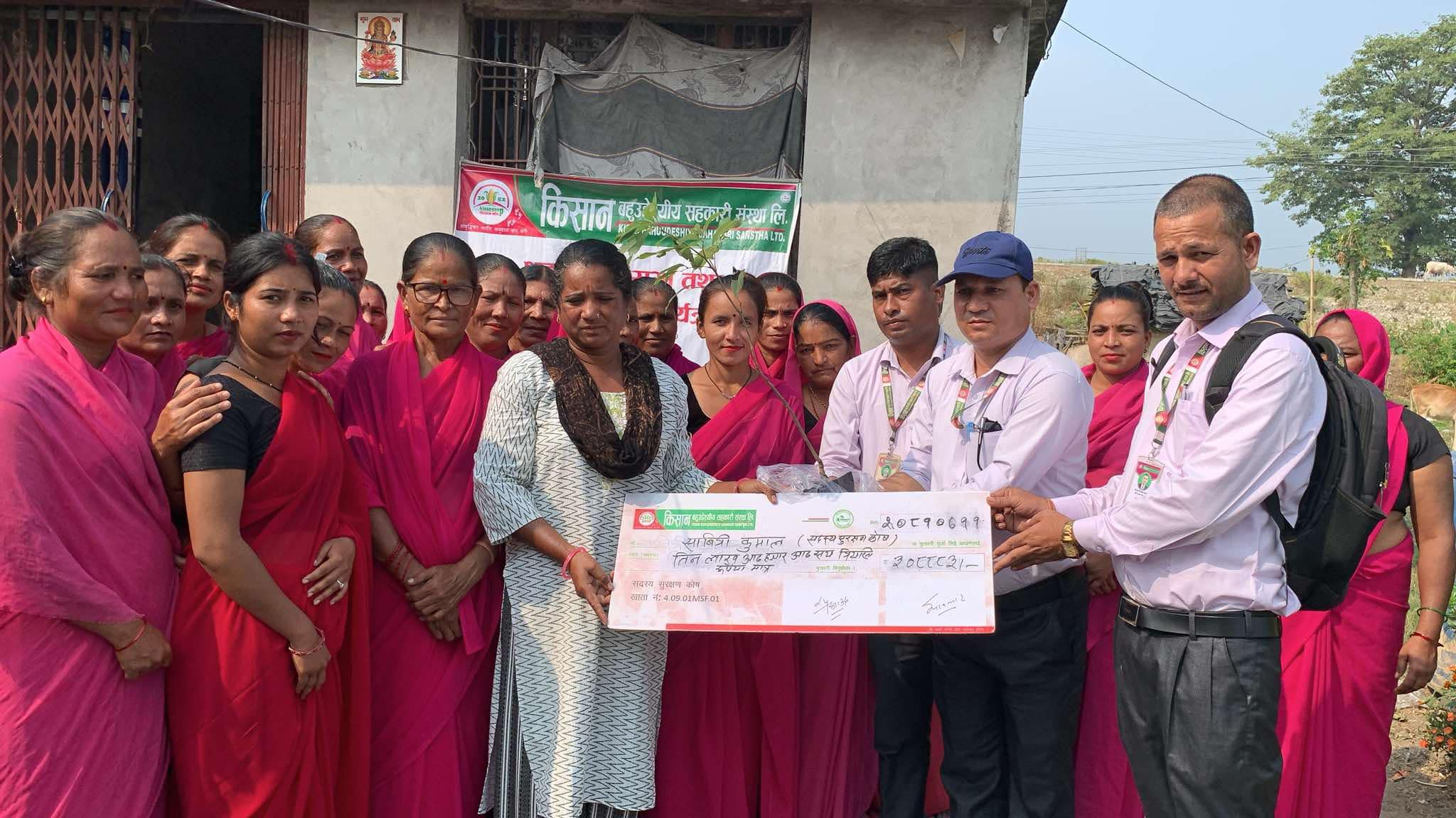 सहकारी संस्थाको भीमदत्त शाखा अन्तर्गत भीमदत्त नगरपालिका ११ भुजेलाकी शेयर सदस्य सावित्री कुमालका श्रिमान स्वः विक्रमबहादुर कुमालको भाद्र १ गते निधन भएपछि संस्थाको सदस्य सुरक्षण योजना अनुसारको रकम हस्तान्तरण गरिएको किसान बहुउद्देश्यीय सहकारी संस्था लिमिटेडको शुक्लाफाँटा इलाका प्रमुख गोरख शाहले जानकारी दिनुभयो ।
