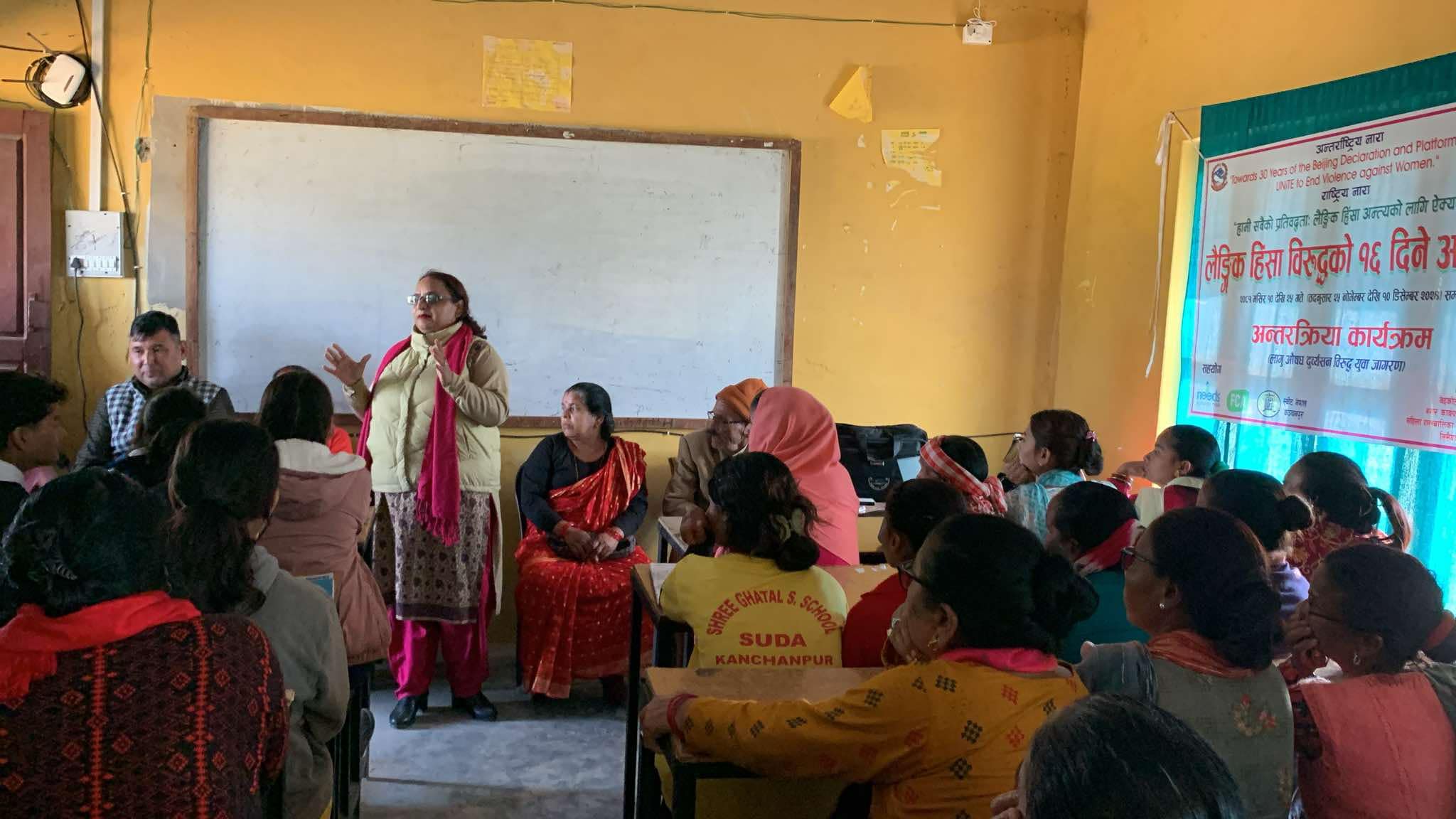“हामी सबैको प्रतिबद्धता ः लैङ्गिक हिंसा अन्त्यको लागि ऐक्यबद्धता”भन्ने मूल नाराका साथमा पालिकाले १० वटै वडामा विभिन्न जनचेतना मुलक कार्यक्रम गर्ने भएको छ । वेदकोट नगरपालिकाको वडा नम्वर ७ मा रहेको श्री घटाल माध्यमिक विद्यालयमा आमा समुह, महिलाहरुको समुहमा आवद्ध सदस्यहरु, विद्यार्थीहरु जनप्रतिनिधीहरुका माझमा विभिन्न जानकारी मुलक विषयमा छलफल भएको थियो ।