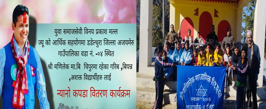 सुन्दर डडेल्धुराको अमरगढी ४ मा जन्मिएका समाजसेवी विनय प्रकाश मल्लद्वारा विपन्न विद्यार्थीलाई न्यानो लुगा सहयोग