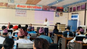 कार्यक्रमका सभाध्यक्ष भीमदत्त नगरपालिकाका उपप्रमुख निलम लेखकले नगर, समुदायस्तरिय सरोकारवालाहरु तथा सञ्चारकर्मीहरु बीच सम्बन्ध विस्तार गरि विपद पुर्व, विपदको समय र विपद पछि समन्वयात्मक रुपमा सूचना प्रवाह गरि सम्बन्धित निकायहरु बाट समयमै सहयोग उपलव्ध हुने प्रणालीको व्यबस्थापन गर्न यो तालिमले सहयोग हुने बताउनु भयो ।