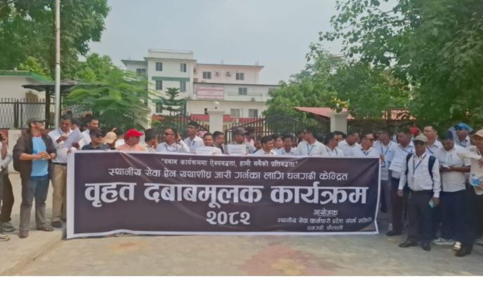 स्थानीय तहमा कार्यरत कर्मचारीहरु आन्दोलन सशक्त बनाउने भन्दै मंगलवार प्रदेशको अस्थायी राजधानी धनगढी तर्फ हिँड्नुभएको छ । पालिकामा अत्यावश्यक बाहेकका सेवा उपलब्ध गराउन नसकिने पालिकाहरुले कर्मचारीहरुले सूचना मार्फत जानकारी गराएका छन् ।