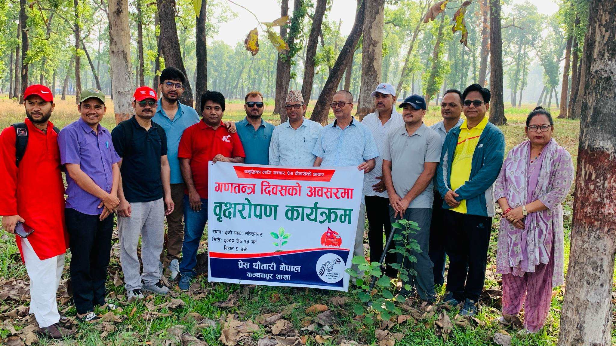 प्रेस चौतारी नेपाल, कञ्चनपुर शाखाका अध्यक्ष मदन गिरीले १८ आँै गणतन्त्र दिवशको अवसरमा स्वच्छ वातावरण बनाउन, ईको पार्कको सौन्दर्यकरण बढाउन वृक्षारोपण कार्यक्रमको आयोजना गरिएको बताउनु भयो ।