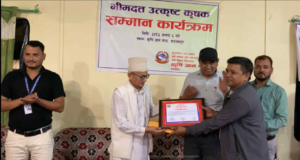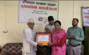 महेन्द्रनगर । कञ्चनपुरमा उत्कृष्ट किसानलाई नगदसहित सम्मान गरिएको छ । शुक्रवार एक कार्यक्रमको आयोजना गर्दै कृषि, पशुपालन, खाद्यन्न तर्फका ३ जना किसानहरुलाई भीमदत्त उत्कृष्ट कृषक पुरस्कारबाट सम्मान गरिएको हो ।