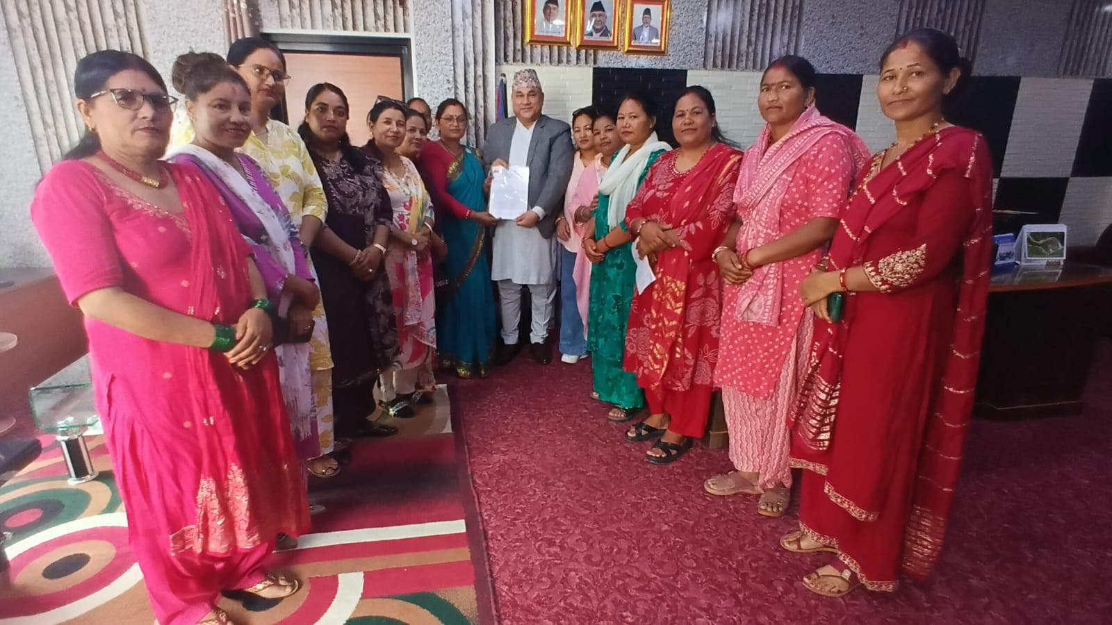 महेन्द्रनगर । महिलामाथि बढ्दो हिंसा, हत्या, शोषण र सामाजिक अन्यायको घटनामा सरकार जिम्मेवार हुनु पर्ने मागसहित अखिल नेपाल महिला संघ, सुदूरपश्चिम प्रदेश समितिले सुदूरपश्चिम प्रदेश सरकारलाई ज्ञापन पत्र बुझाएको छ ।