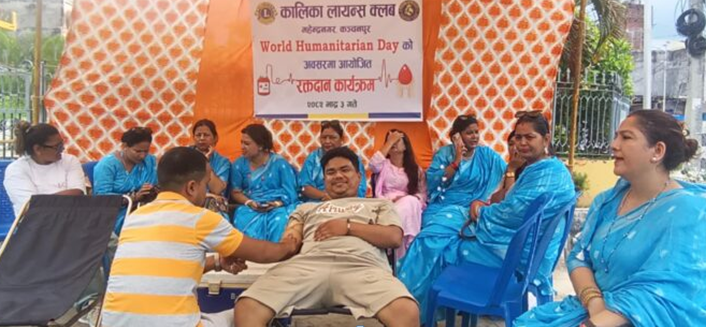 महेन्द्रनगर । कञ्चनपुरको महेन्द्रनगरमा रहेको कालिका लायन्स क्लबले रक्तदान गरेको छ । कालिका लायन्स क्लबले विश्व मानवता दिवसको अवसरमा मंगलबार महेन्द्रगनरमा महेन्द्रनगरमा रहेको कालिका लायन्स क्लबले रक्तदान गरेको हो ।