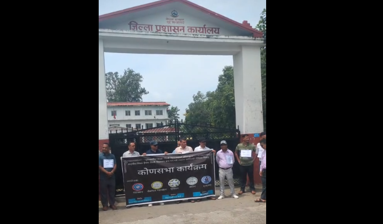 कञ्चनपुरका निजी विद्यालयका संचालक शिक्षा विधेयक बिरुद्ध प्रशासन मुल गेटमा प्रर्दशन