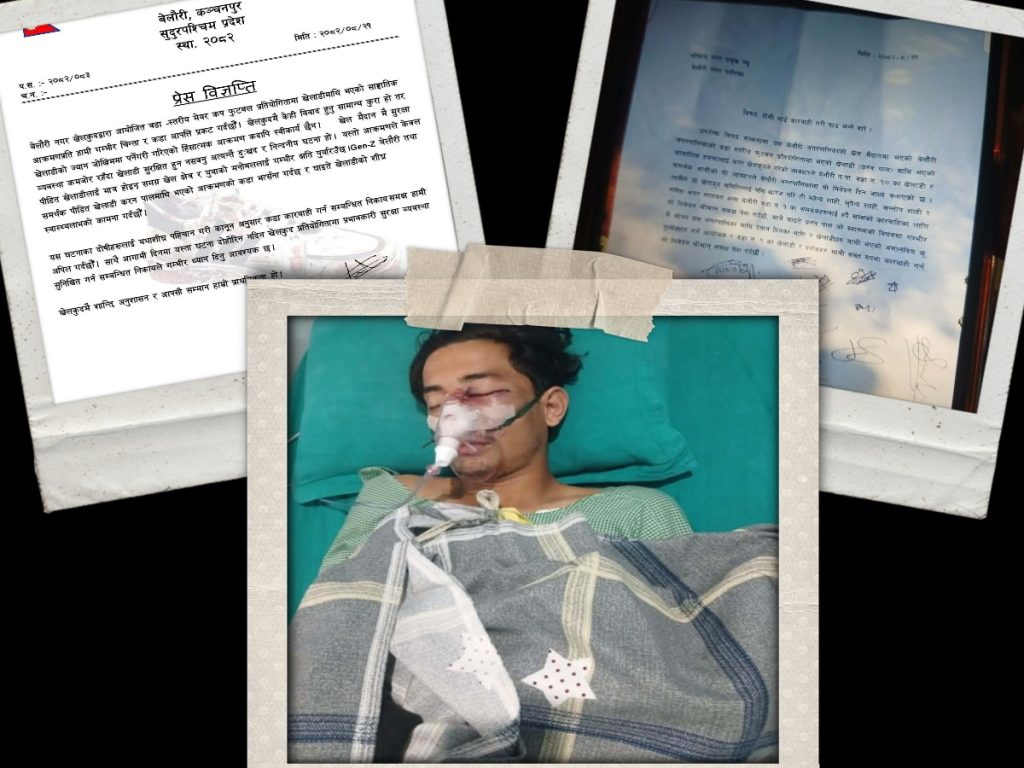 महेन्द्रनगर । कञ्चनपुरको बेलौरी मेयर कप प्रतियोगिता कुटिएका खेलाडी करन पाल घटनाको छानबिन गरेर दोषि उपर कार्बाहीको माग अघि सारिएको छ ।