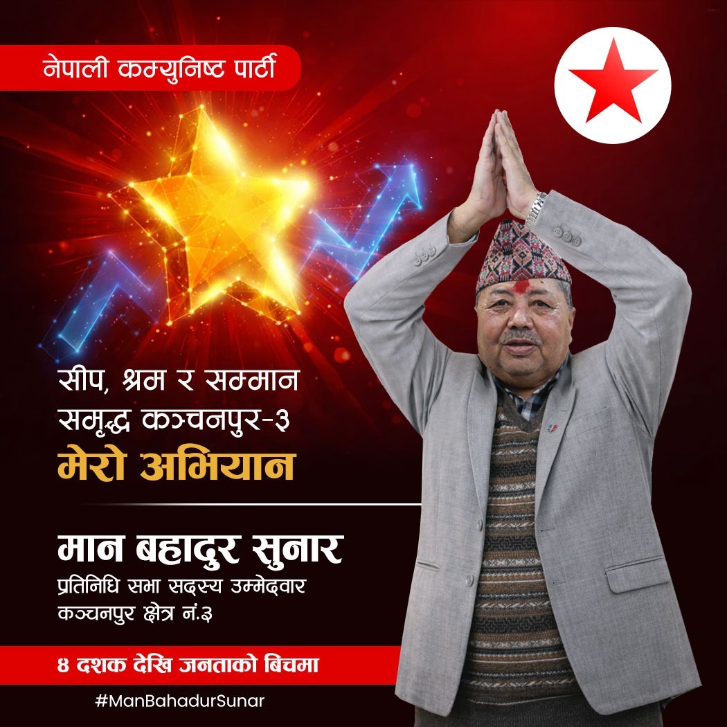 ‘हाम्रा सबै नेता कार्यकर्ताहरुदेखि स्वयम उम्मेदवारकै सर्मथकहरु स्वतस्फूर्त रुपमा खटिएका छन, ‘उनले भनिन, ‘मान बहादुर सुनारकोृ राजनैतिक यात्रा पालिकादेखि प्रदेश हुँदै सिधै केन्द्रीय सघीय जिम्मेबारीमा पु¥याउन अहोरात्र खटिएका छन ।’