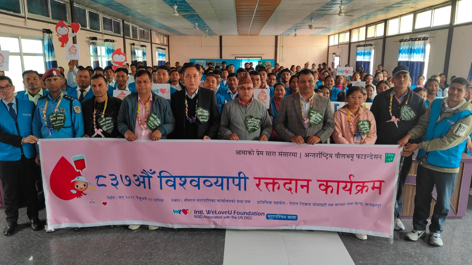 महेन्द्रनगर। मानवीय सेवामा सक्रिय अन्तर्राष्ट्रिय संस्था ‘अन्तर्राष्ट्रिय वि लभ यु फाउन्डेसन’ ले भिमदत्तमा भव्य रक्तदान कार्यक्रम गरेको छ । ‘आमाको प्रेम सारा संसारमा’ भन्ने मूल नाराका साथ फाउन्डेसनले बुधवार आफ्नो ८३७ औं विश्वव्यापी रक्तदान अभियान सञ्चालन गरेको हो ।